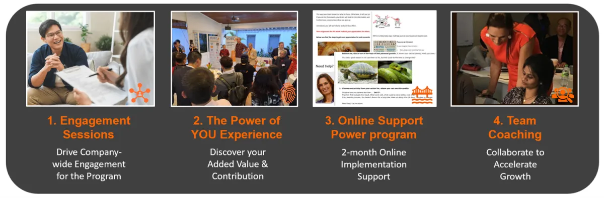 Business-first: Typical training lifts morale for a day; Power of YOU delivers lasting behavior change and productivity impact.